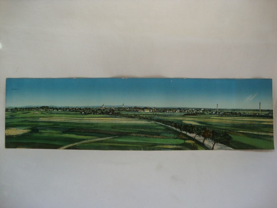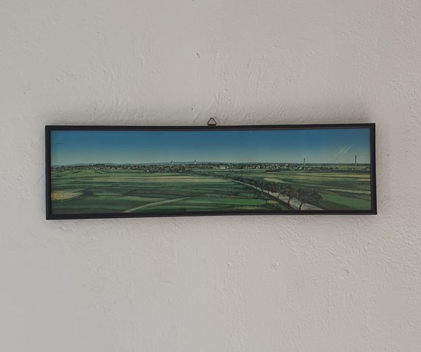 Krasan rijetki originalni prvi primjerak panorame grada Varaždina u boji izrađen 1914.godine izrađen od komada dužine 55,5 cm x 15,5 cm kao skoro 4 klasične razglednice izdanje papirnica Srećko Hartmann Varaždin - sve originalno iz vremena slikano i bez stakla od iza radi natpisa , sve vraćeno na mjesto i stavljena nova traka jer stara je bila poderana