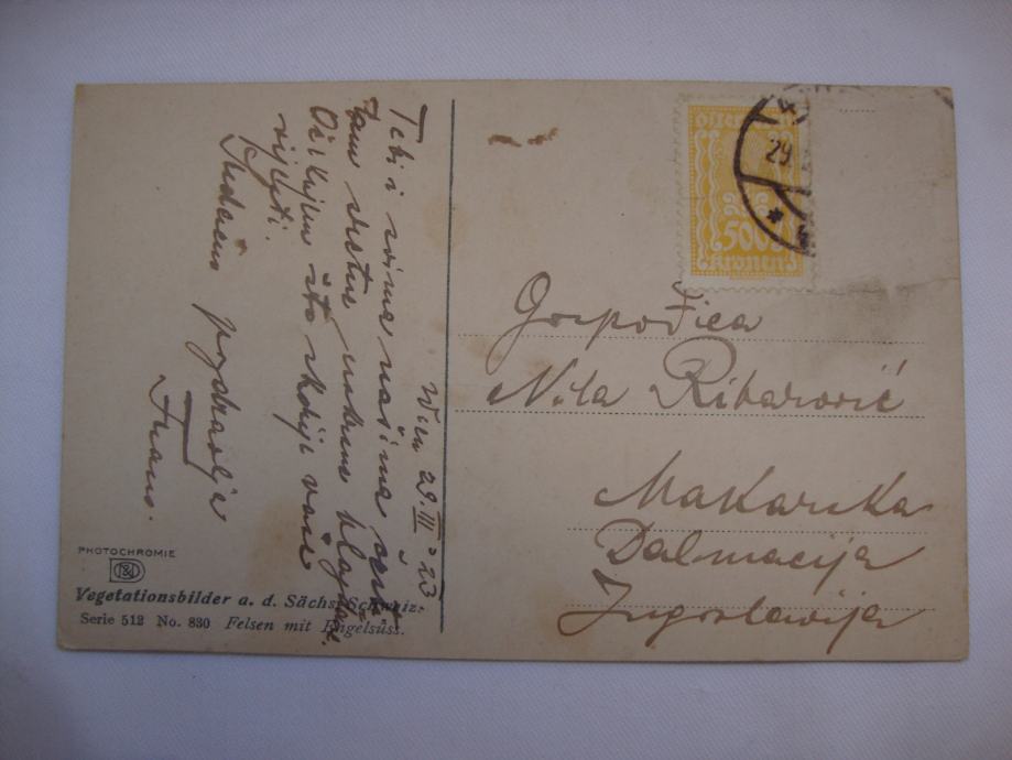 Stara dopisnica putovala 23.II.1923. godine za Makarsku - art deco dopisnica