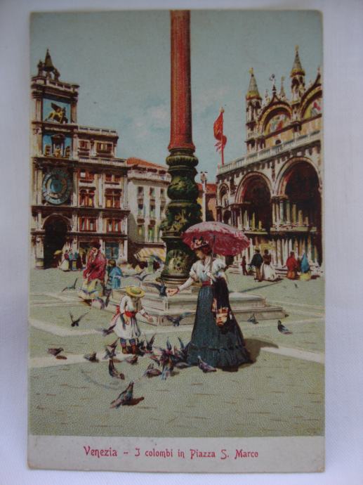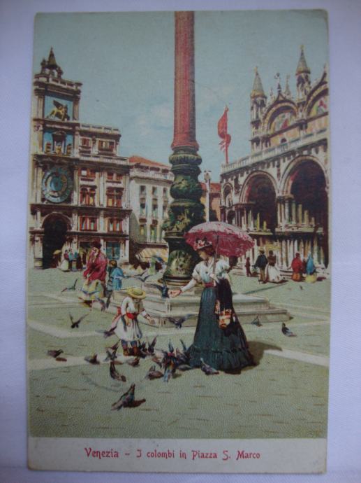 Venezia postale 1906. I columbi in Piazza S.Marco-razglednica