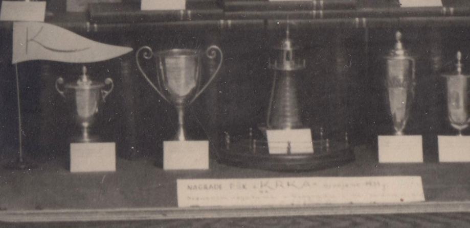 Na fotografiji se vidi gomila osvojenih pehara izloženih u izloge jedne šibenske Knjižare i papirnice. Na poleđini je prigodni tekst sa podacima o regatama i nagradama, dok se na desnoj strani nalaze nazivi nekih pobjedničkih kategorija te nekoliko imena Krkinih veslača.