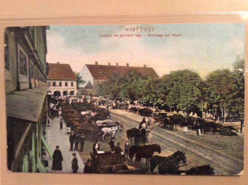 VINKOVCI STARA RAZGLEDNICA NEDJELJA NA GLAVNOM TRGU 1910.