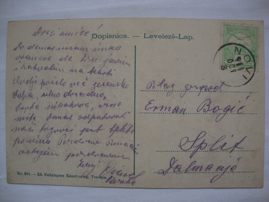 Stara dopisnica Adria- NOVI- VINODOLSKI 1911. putovala za Split