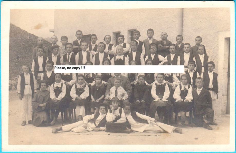 Stara predratna razglednica sa učenicima IV i V god. Niže pučke škole u Novom iz 1930-tih godina.