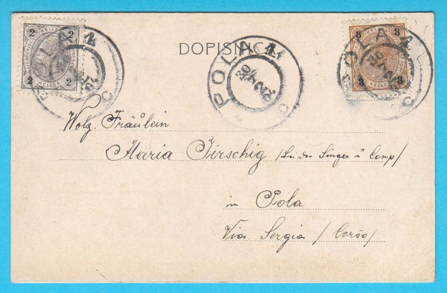 Doista prekrasna i jako rijetka stara razglednica Visa, putovala 1904. godine u Pulu (Pola).