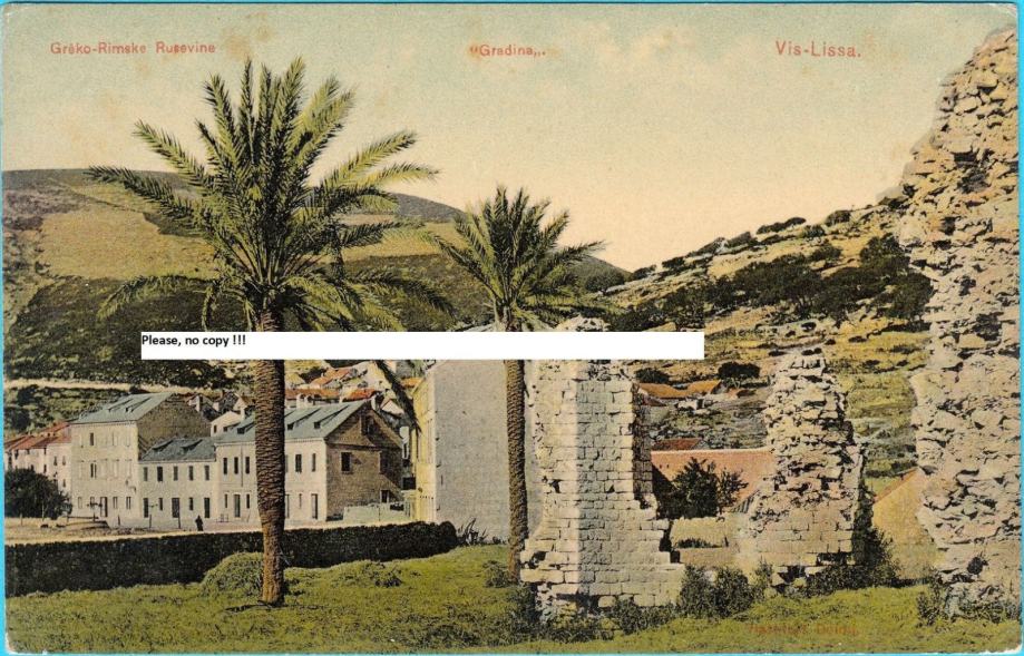 VIS - LISSA ... GREKO-RIMSKE RUŠEVINE stara razglednica * Otok Vis