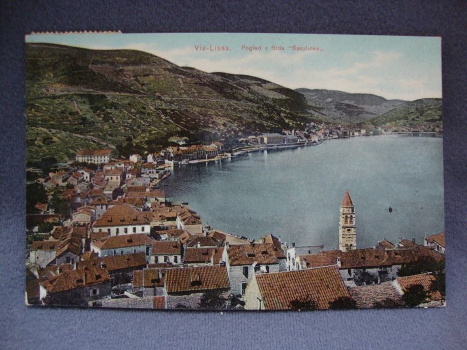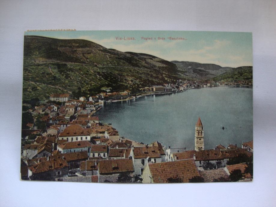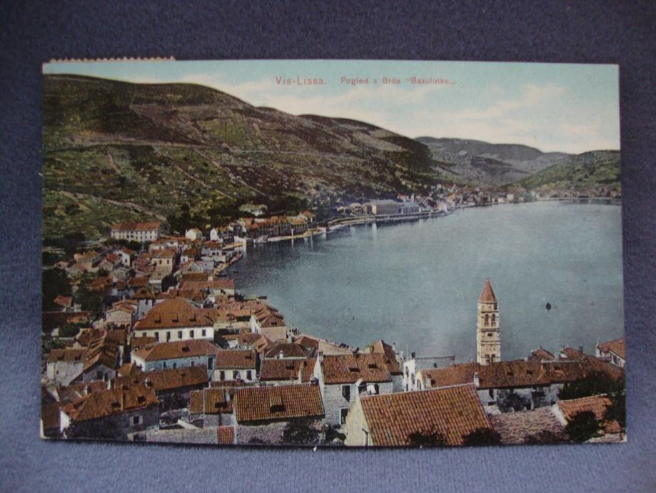 Vis - Lissa postcard 1911. - Pogled sa brda Basulinke -putovala LINZ