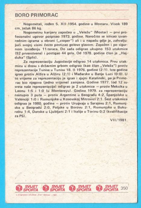 Ovo je stara vrlo lijepa sportska kartica iz bivše Jugoslavije, izlazila 1980-1981.