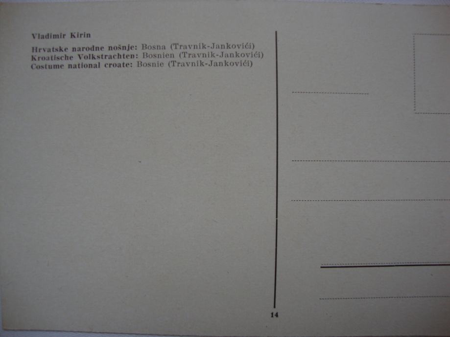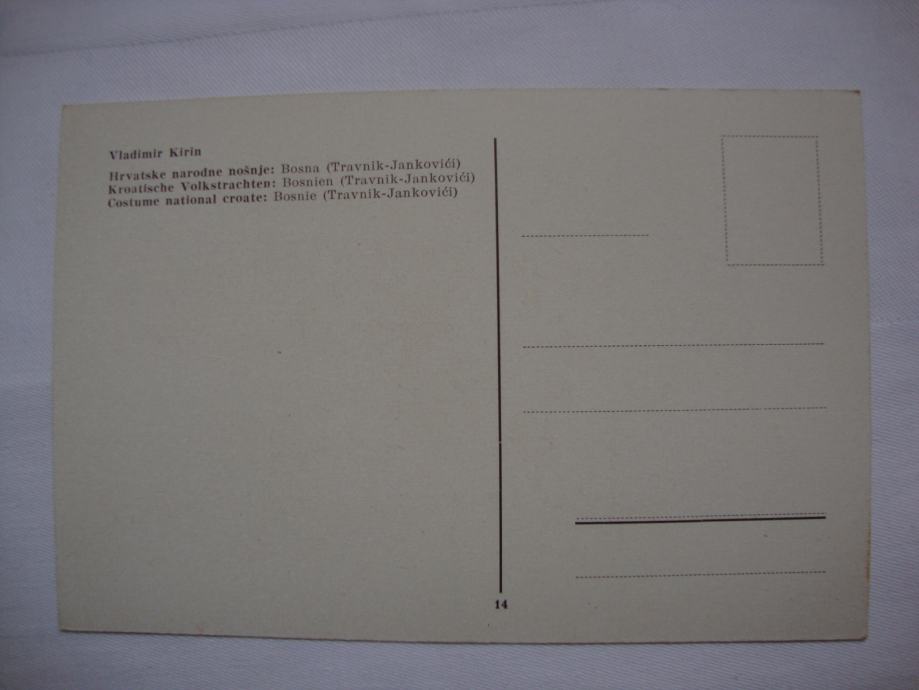 Narodna nošnja iz Travnika ,razglednica Vladimir Kirin 1954. u odličnom stanju