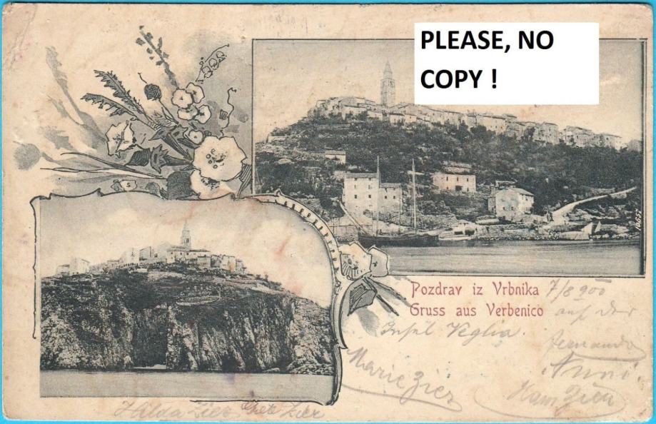 VRBNIK (Verbenico) Otok Krk - stara razglednica putovala 1900. godine