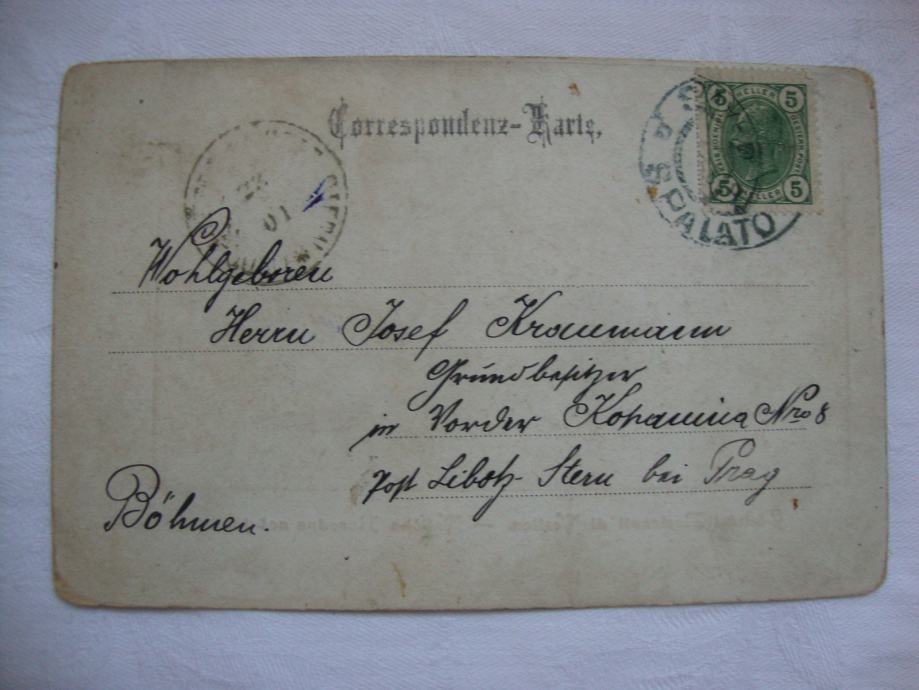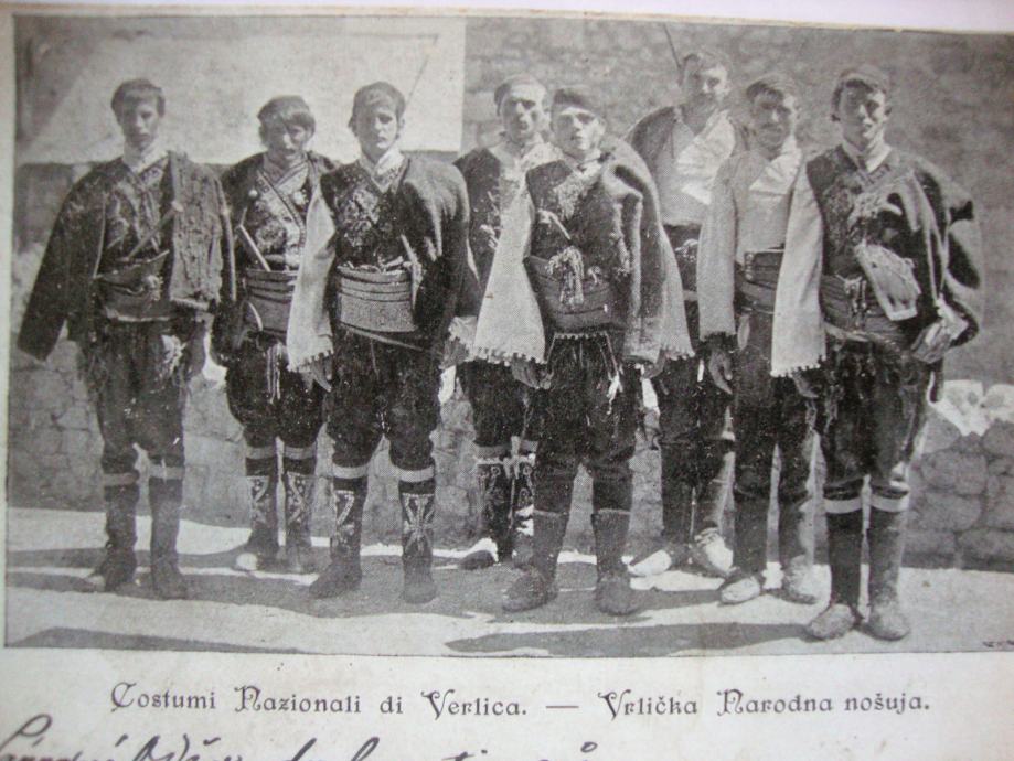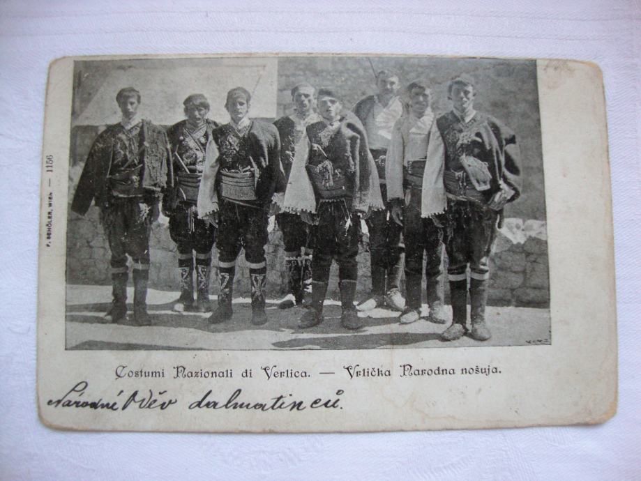 Iznimno rijetka dopisnica Vrlike sa motivom momaka u narodnoj nošnji sa kraja 19.stoljeća putovala za Split 1901.godine