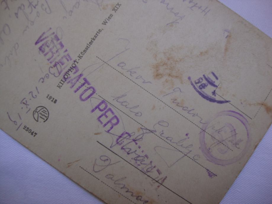 Bečka dopisnica iz 1918. godine putovala za Hvar stanje odlično sa žigovima