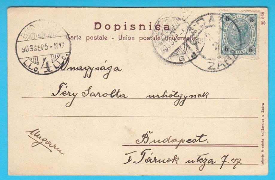 Stara austro-ugarska razglednica Arbanasa (Zadar), putovala davne 1903. godine u Budimpeštu.