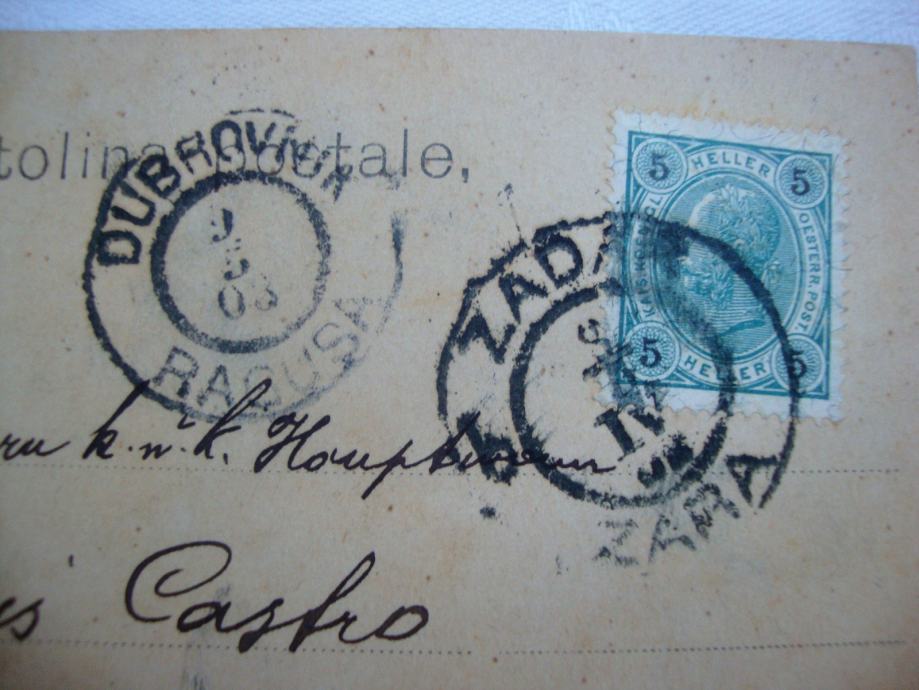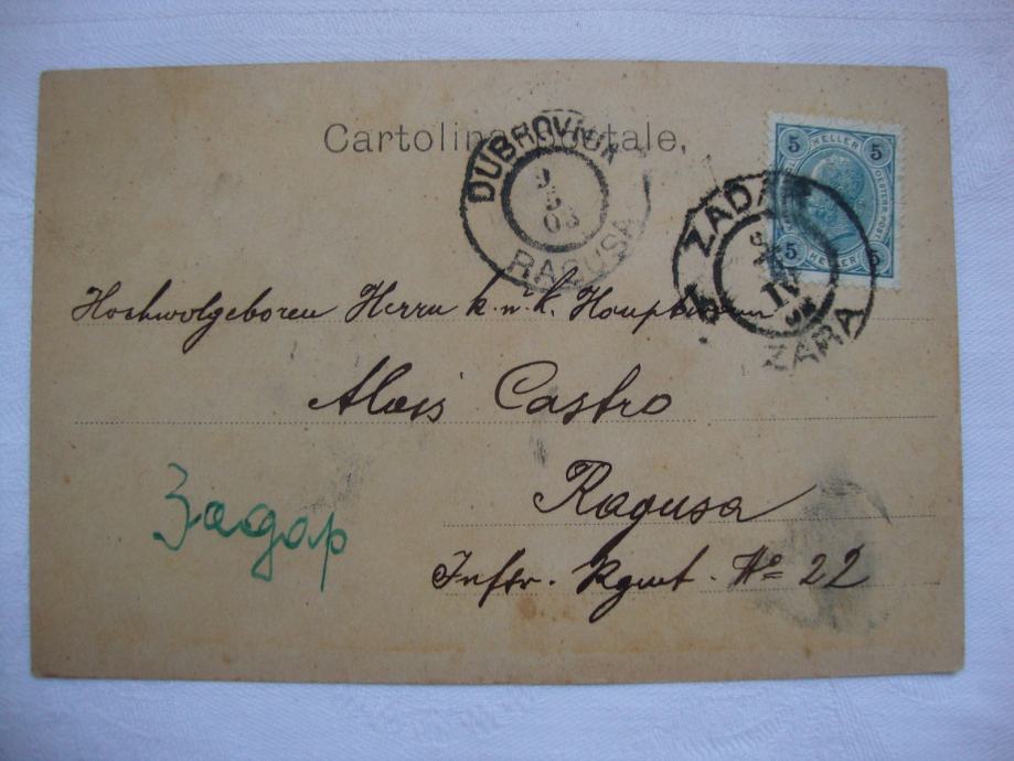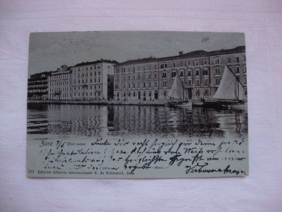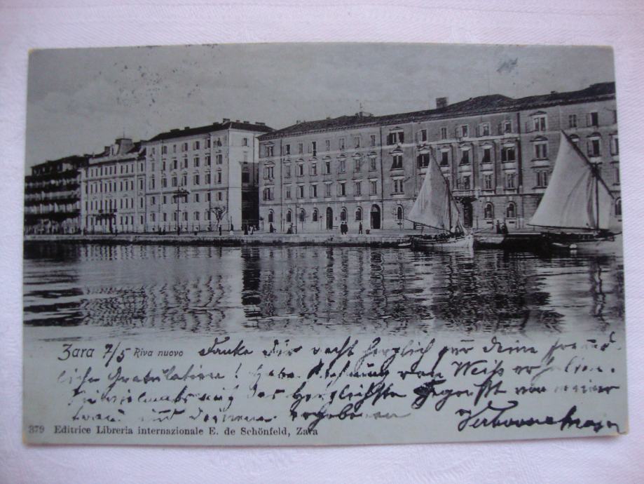 Krasna rijetka dopisnica Zadra putovala 1903. god. za Dubrovnik nastala je ranije oko 1900,god Naklada E. de Schonfeld