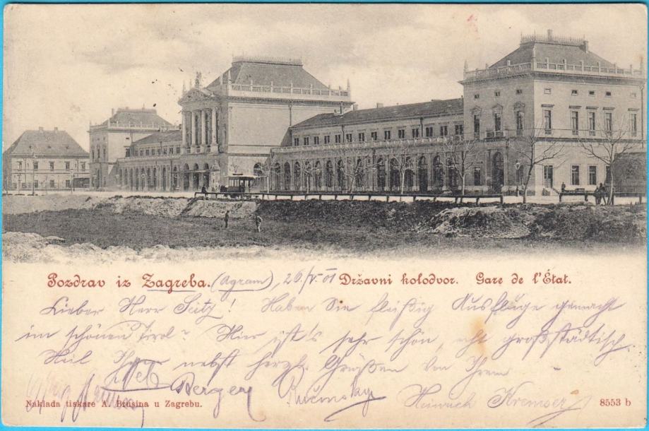 ZAGREB - Kolodvor .. razglednica, putovala 1901.* Željeznička stanica
