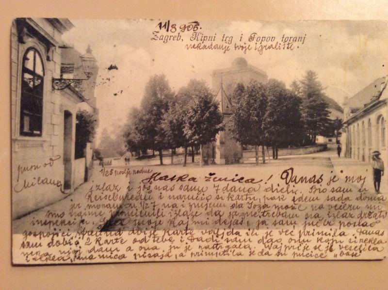 ZAGREB STARA RAZGLEDNICA KIPNI TRG I TOPOV TORANJ 1905. R0371