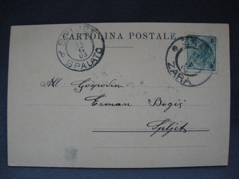 Dopisnica Zadra putovala 1903. godine za Spljet u izvrsnom očuvanom stanju zaštićena u foliji