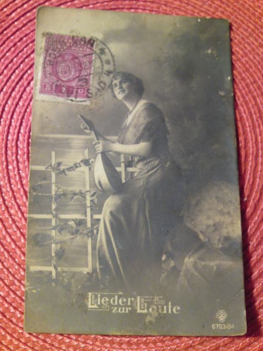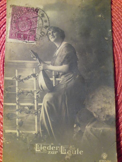 Sara razglednica poslije I svjet.rata, lijepa žena sa tamburom.