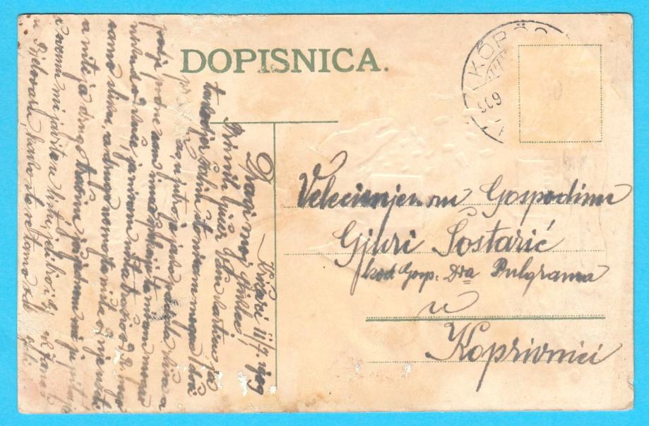 Prekrasna i vrlo rijetka stara domoljubna razglednica, putovala davne 1909. godine Križevci - Koprivnica.
