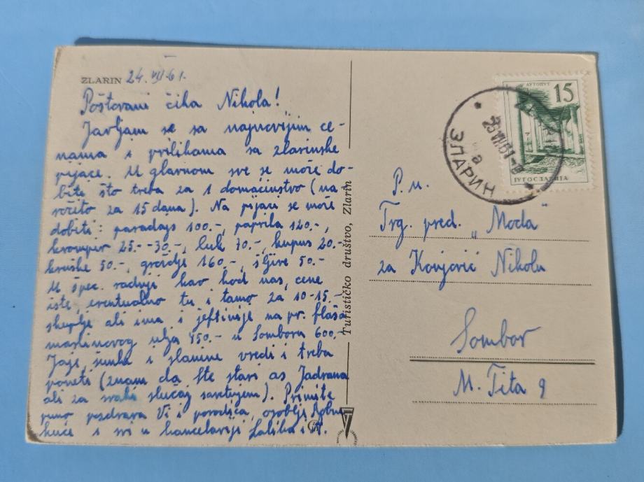 ZLARIN STARA RAZGLEDNICA PUTOVALA 1961. U DOBROM STANJU.