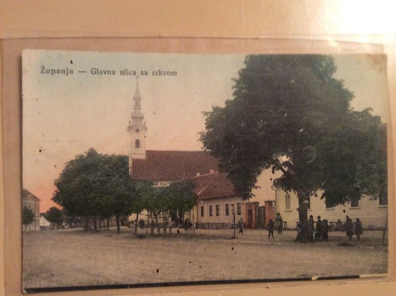 ŽUPANJA STARA RAZGLEDNICA GLAVNA ULICA SA CRKVOM 1919. R0215