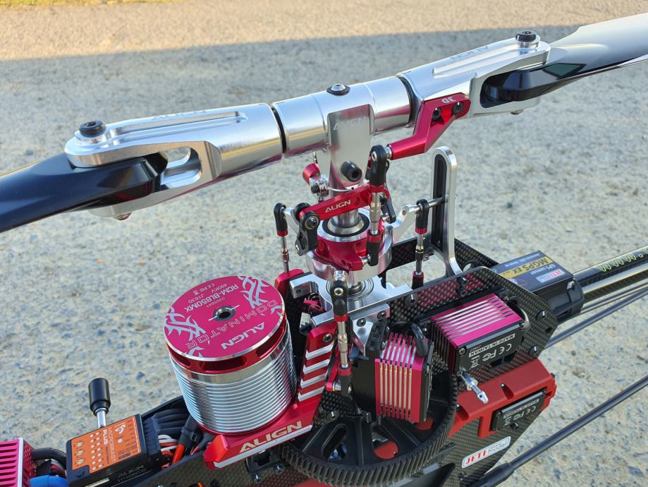 Prodajem 3D RC helikopter Align T-Rex 700X Dominator super combo (RH70E23X), izvorni 2017.g. model sa dosta upgade-ova, također sve vitalne komponente na njemu su nove, ima svega nekoliko letova na zadnjem setu blejdova, zupčanika, osovina, ležaja... Prodaje se u stanju gdje je apsolutno bez i jedne funkcionalne mane, u poptunosti balansiran i poštelan tako da je vrlo niska razina vibracija, leti odlično. Potencionalnom kupcu mogu prezentirati sve, od RC setupa, kopiranje setupa modela na drugi Jeti RC upravljač pa do pokaznog leta. Na helikopteru je Microbeast BeastX plus Pro verzija koja ima dodatne mogućnosti kao npr rescue, attitude... Zatim opremljen je komplet Jeti telemetrijom, cijeli niz Jeti senzora kao npr napon, struja, potrošnja mAh, naponi svake ćelije baterije (12S), temperatura motora i ESC-a, realni RPM rotora, GPS... Uz helikopter ne ide RC upravljač, niti baterije ili ovisno o dogovoru. Na poklon još jedan potpuno novi canopy (vrijednost 90€) i BeastX USB interface (vrijednost 20€). Novi takav helikopter opremljen sa komplet Jeti telemetrijom, reciever-om i upgrade-om na rescue funkcije je preko 2300€ Razlog prodaje imam 2 što mi trenutno nije potrebno. Zamjene me ne zanimaju. Za dodatna pitanja stojim na raspolaganju.