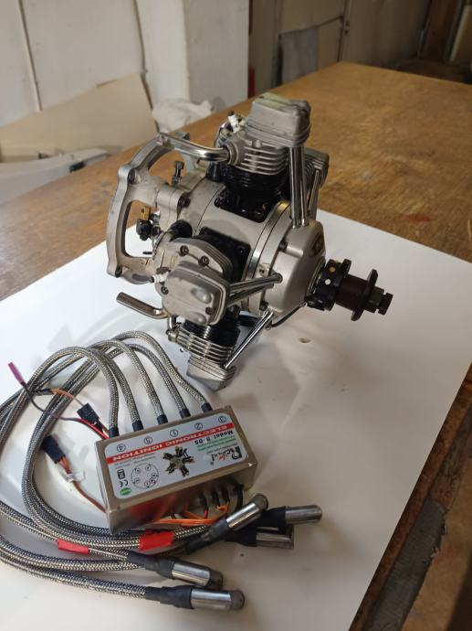 Prijatelj prodaje skoro novi ASP FS400AR 5cilindarski radijalni motor, 65cc, prerađen na benzin, nova RCexl elektronika, motor ima pola sata rada na probnom stolu.