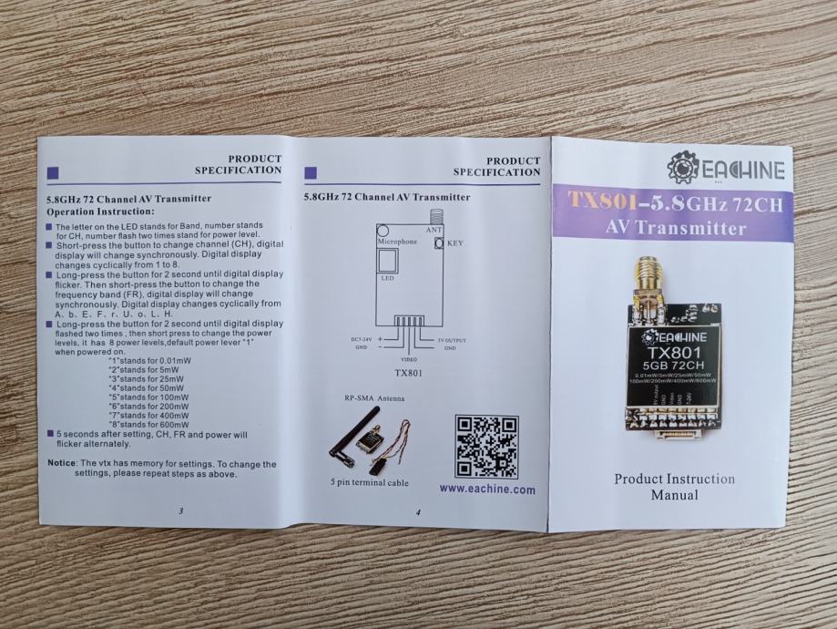 Eachine TX801 5.8G 72CH 0.01mW 5mW 25mW 50mW 100mW 200mW 400mW 600mW Switched AV VTX FPV Transmitter