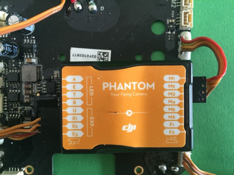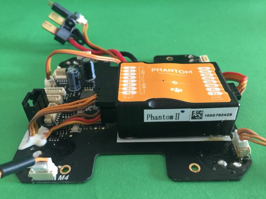 DJI Phantom 2 NAZA kontroler na kontrolnoj ploći. NAZA je testirana i radi normalno, kontrolna ploća radi, ali ima jedan potrgan konektor koji bi se možda mogao popraviti.