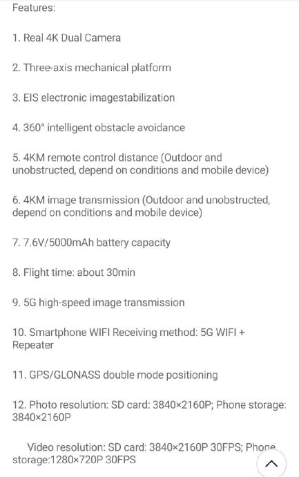 U slučaju gubljenja signala ili prazne baterije dron se vraća automatski doma,ima laser koji sprječava sudare tako da je pogodan i za početnike. Dron ima svijetlo koje se da upaliti i ugasiti te je pogodan za let noću. Odlično se ponaša i po jačem vjetru (lvl.5)