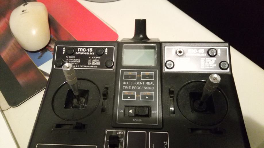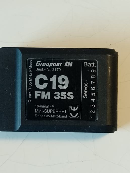 GRAUPNER MC 15/35, RC predajnik za telekomandu , frekvencija 35 Mhz, FM modulacija ,kompletan , rabljen, ispravan, sa kristalom za 68 kanal, ima prijemnik Graupner C 19 ,9 kanala . Baterija slaba , upotrebljiva za kraći rad , može se zamjeniti.