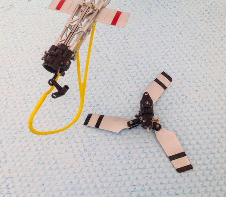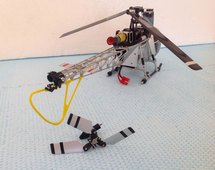 Dužina helihoptera 45 cm, diametar velikog rotora 43 cm.
