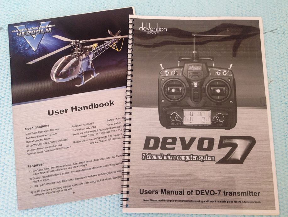 Velika snaga motora, 3-axis gyro sistem, uključen radijski upravljač Devo 7, 2.4 GHz.