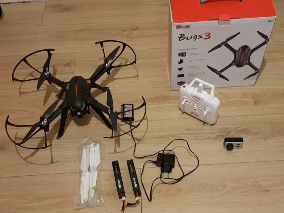 U kompletu 2 baterije, punjač, rezervni propeleri i kamerica.