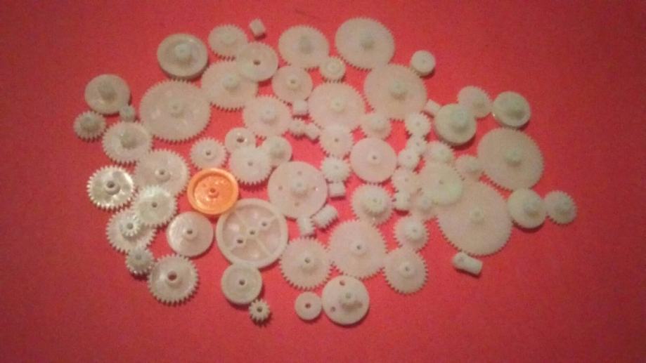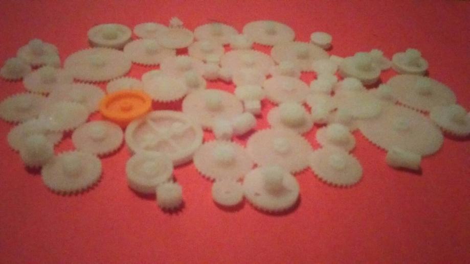 komplet od 50-ak raznih plastičnih zupčanika sa fotografije promjera 5 - 25mm.