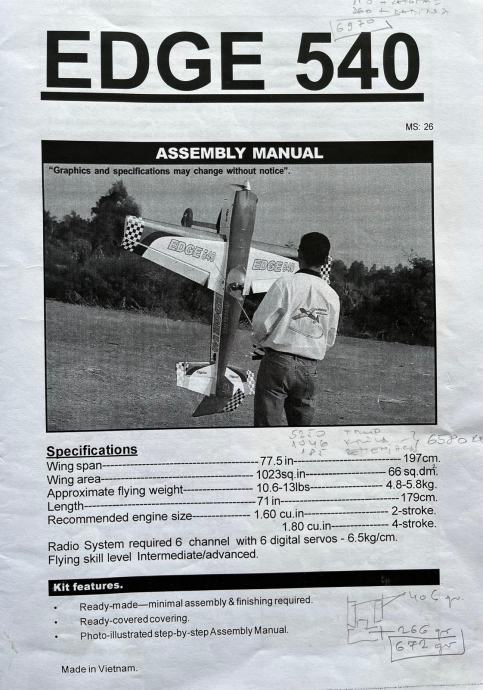 EDGE 540 , raspon 1970cm, Seagull, RCGF motor 32 ccm, NOVO, nikad letio, 1000 Eura