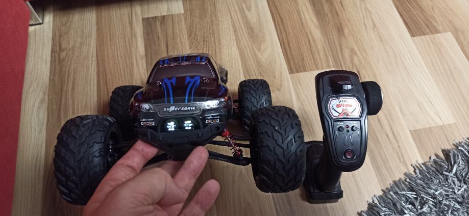 Prodajem novi RC auto, sa pojačanim podvozjem. Pogon je na stražnje kotače, max brzina je 40km/h, daljinski je podesivi- znači podesit se može brzina i pravac prednjih kotača. Uz bateriju dobijete i punjač te ključ za kotače. Sve se vidi na slikama. Prodajem ga jer mi ne treba (dečki su još premali za polovit komande). Mogućnost dostave u Zg ili po dogovoru ako mi je usput. Mogućnost slanja poštom uz plaćanje pouzećem.