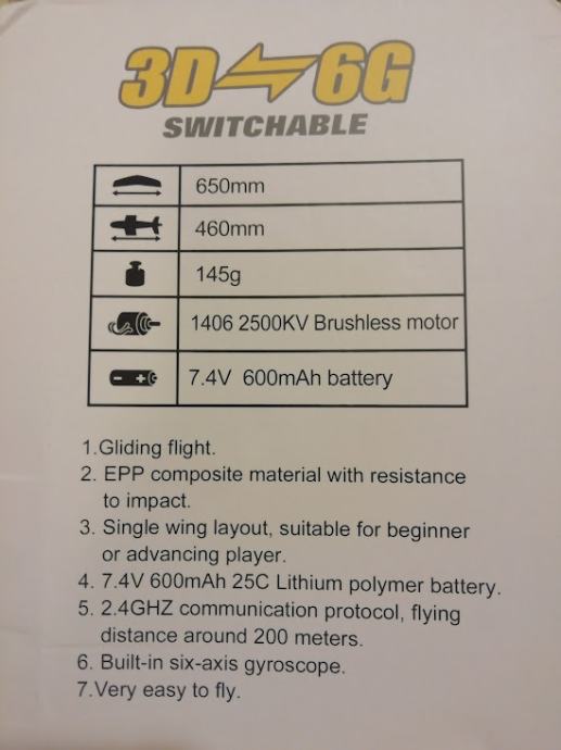 RC avio model za letenje od EPP plastike, opremljen za let (ready to fly RTF)