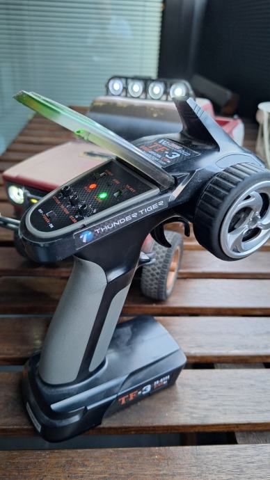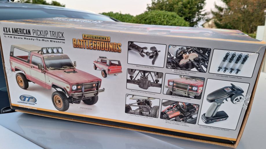 Prodajem kompaktni RC auto PUBG 4x4 AMERICAN PICKUP TRUCK 1/12 Electric RTR crvene boje, ''profi'' proizvođača modela Thunder Tiger, dodatno sam ugradio LED svjetla i upravljanje. Vozilo ima 4x4 pogon i postiže maksimalnu brzinu od 30-40 km/h, te može "driftati" na mjestu. Dodatno sam naručio zamjenski zupčanik koji se na početku istrošio. Vozilo ima oko 5 sati vožnje, jezgra je lijepo očuvana bez oštećenja, osim plastičnog kućišta na stražnjem dijelu vozila (blago napuknuto i zalijepljeno).