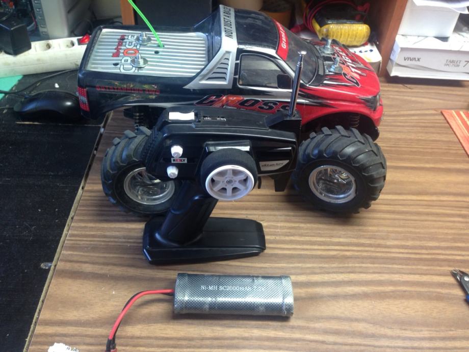 pogon na sva cetiri kotaca , brushed 540 motor ,novi servo i komplet ramena , ni-mh 2200mah baterija , punjac , daljinski upravljac.