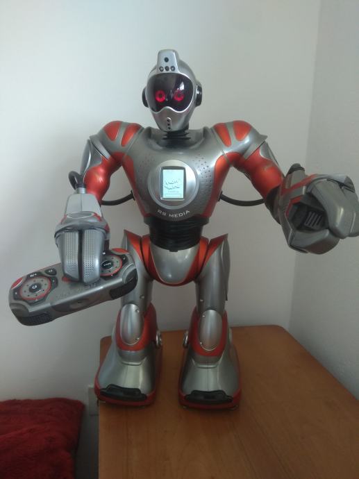 potpuno ispravan, veličina robota je 57 cm, velike mogučnosti programiranja i upravljanja putem računala, uz njega ide daljinski, usb kabel, sd kartica,punjač i uputstva na hrvatskom-više na linku https://www.youtube.com/watch?feature=player_embedded&v=5BOBVdNK0R4