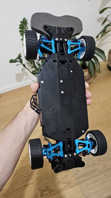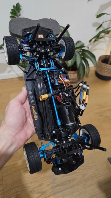 Baterija je Team champion, 5500mAh, 2S, motor + ESC Robionic Razer. Promijenjeni su svi ležajevi u prave alu ležajeve. Imam plastične ako kome treba.