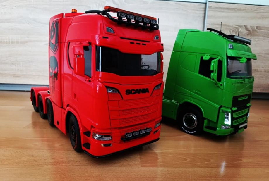 Na prodaju Volvo FH16 Tamiya iz moje radione koji sam sam radio.U kamion je ugradjeno najbolje od najboljeg.Elektronika je Kraftwerk sa profesionalnim i originalnim zvukom.Led svjetla su Kraftwerk,motor i mjenjac je servonaut,servo je 25kg,aluminijske felge i jaci diferencijal.Baterija je 6800.Kamion je lakiran profesionalno i predjen sa 2k lakom.Daljinski upravljac je sa 14 kanala i sve je podeseno.Znaci pali i vozi.Prikolica je moj rucni rad i dolazi uz kamion.Sve u svemu lijepa komp i na druzenjima dobija samo pohvale.Ukoliko imate zelju mogu i po vasem ukusu složit kamion po narudžbi.