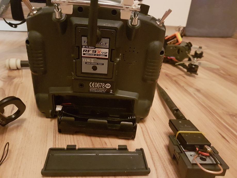 Da bi stanica funkcionirala trebate samo 8AA baterija ili mozete koristiti kabal koji se izvlaci van iz stanice (kroz poklopac ) na xt60 konektor te tako mozete koristiti bilo koju 3s bateriju (cak i puno vecu nego stane u stanicu sto moze biti jako zgodno ako koristite fpv ekran koji se u tom slucaju moze napajati iz te baterije ) , tu je i 3d printani nosac (bijeli) koji ujedno sluzi kao stalak za stanicu a na njega mozete i ucvratiti raznu fpv opremu
