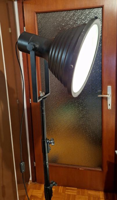 Crni okrugli reflektor opremljen grlom E27 za LED, obične i halogene žarulje.