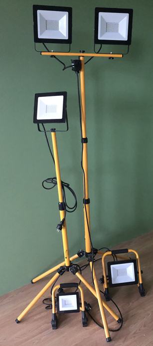 Robusni radni reflektori sa stalkom ili stativom za profesionalnu upotrebu, efikasni, sklopivi, zauzimaju malo prostora, napajanje 240V.
