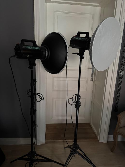 Prodajem Quadralite Move 300 studijske bljeskalice (2 kom) sa stalcima i sa beauty dish-evima.