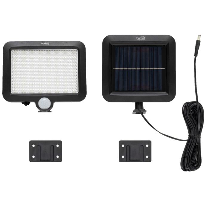Želite li pouzdano i energetski učinkovito rješenje za rasvjetu vašeg vrta ili dvorišta? Home FLP250SOLAR solarni LED reflektor savršen je izbor za one koji traže moderno i održivo rješenje. Ovaj sofisticirani reflektor ima 56 hladno bijelih SMD LED dioda, koje svijetle u štedljivom načinu rada kada padne mrak, ali kada se detektira kretanje, intenzitet se povećava na 100%, čime se osigurava adekvatno osvjetljenje prostora. Sa svojim kutom detekcije od 120° i udaljenosti detekcije od 5 metara, PIR senzor pokreta osigurava da se svjetlo pali samo kada je potrebno. Svjetlina od 250 lumena i temperatura boje od 10.000K jamče jasno i jako svjetlo. Zahvaljujući IP44 zaštiti, reflektor je otporan na prskanje vodom, tako da se može koristiti i na otvorenom. Izdržljivi metalni i plastični materijali, kao i pričvršćeni elementi za pričvršćivanje, osiguravaju da se reflektor može jednostavno i sigurno postaviti na bilo kojem vanjskom mjestu. Zahvaljujući baterijskom napajanju, nema potrebe za vanjskim izvorom napajanja, reflektor radi samostalno na solarnu energiju, što značajno smanjuje troškove rada.
