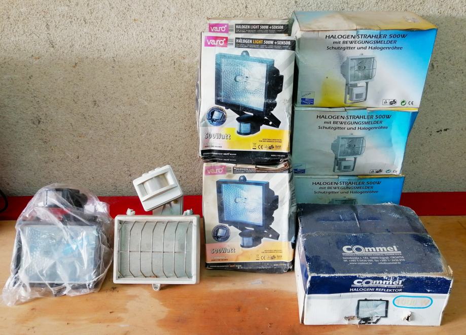 Reflektori sa senzorom pokreta od 1000W i 500W 10kom i žaruljice od 500 do 1500W 7kom, novo nekorišteno i na prodaju ISKLJUČIVO U KOMPLETU !