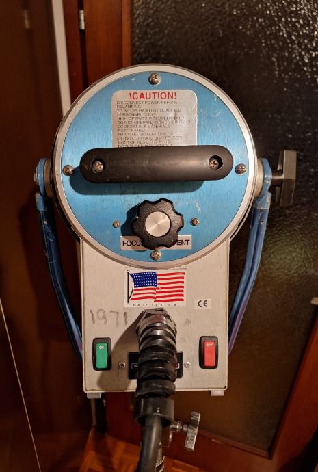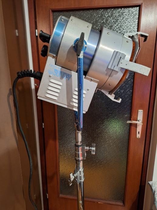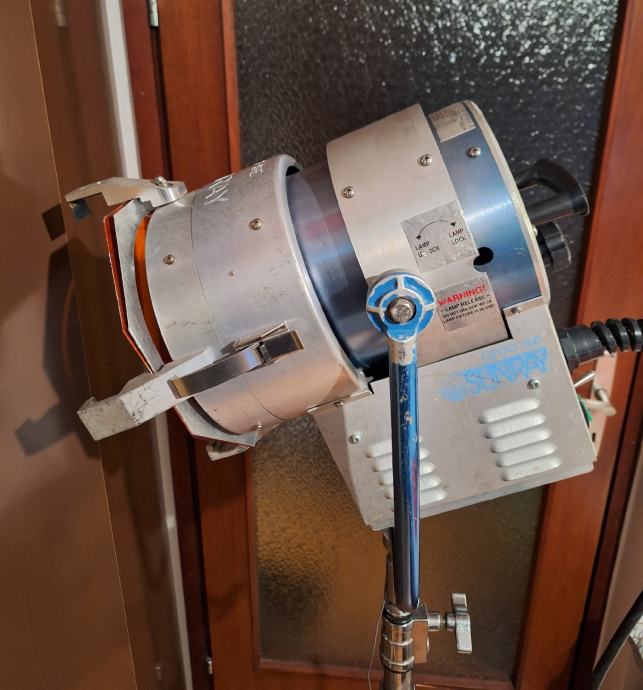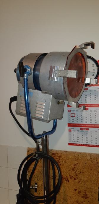 Vuntage filmski reflektor, američki, iz sedamdesetih, u originalu HMI s grlom G38, ali preuređen na grlo E27 za obične i LED žarulje.