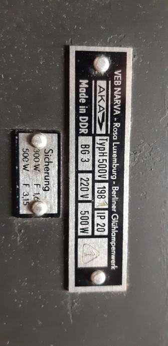 Vintage profilni refkektor 300/500 W, VEB NARVA Rosa Luxembur, made im DDR, starosti preko 50 godina.